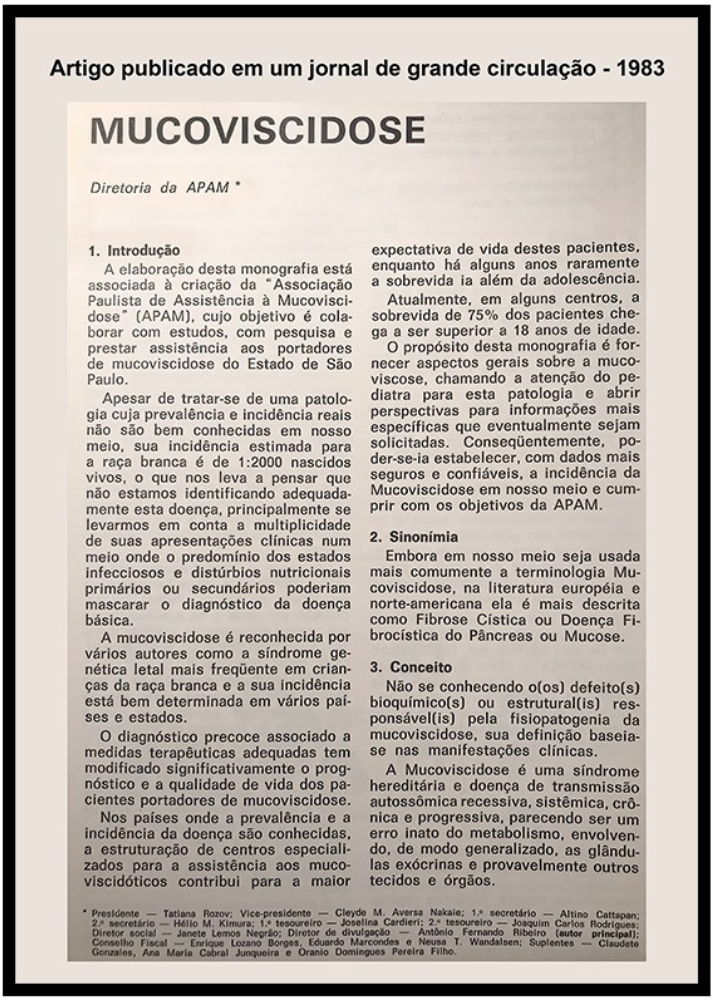 Este artigo, publicado em um jornal de grande circulação, representa um marco importante na construção da conscientização sobre a doença em nosso país. Em uma época em que a expectativa de vida era limitada e os recursos eram escassos, falar sobre mucoviscidose era um ato de coragem e compromisso.